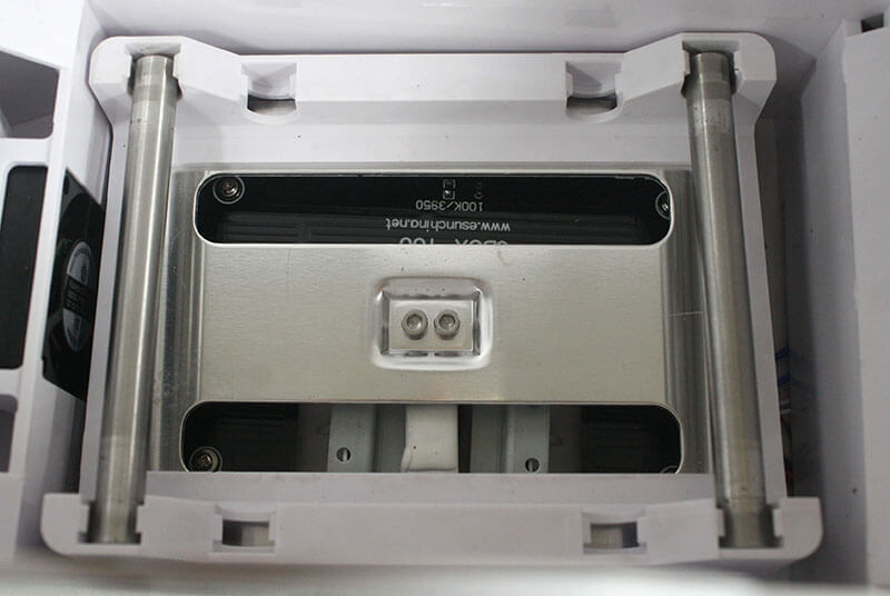 Принцип работы eSun eBOX очень прост: в специальный отсек нужно поместить пакетик силикагеля, после чего встроенный вентилятор прогоняет через него воздух, а силикагель впитывает в себя всю избыточную влагу. Максимальное время просушивания и прогрева составляет 10 часов. Небольшой LCD-дисплей в нижней части корпуса позволяет установить требуемую температуру, настроить вес катушки и выставить таймер.