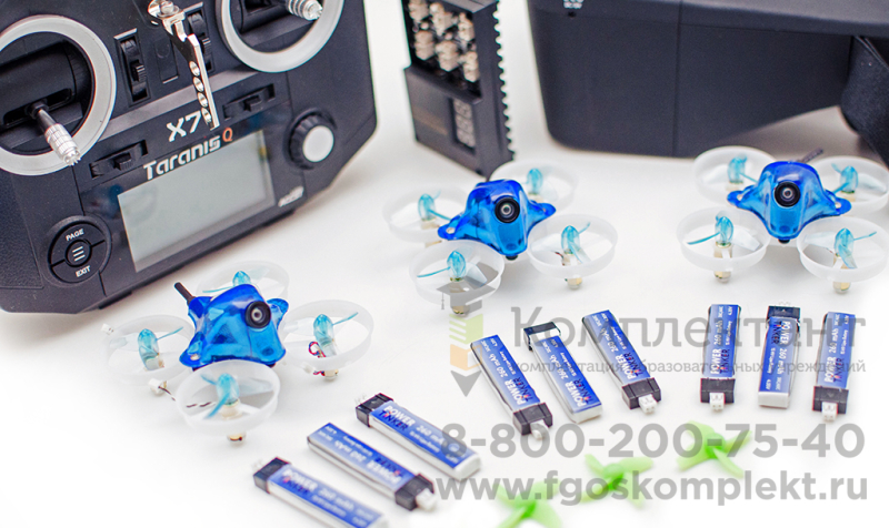Образовательный набор состоит из восьми готовых к полёту современных мини-дронов, а также комплекта стандартизированных элементов полосы препятствий. Включает электронные версии учебных материалов, набор запчастей, все необходимые инструменты и симулятор для тренировки навыков управления квадрокоптером.