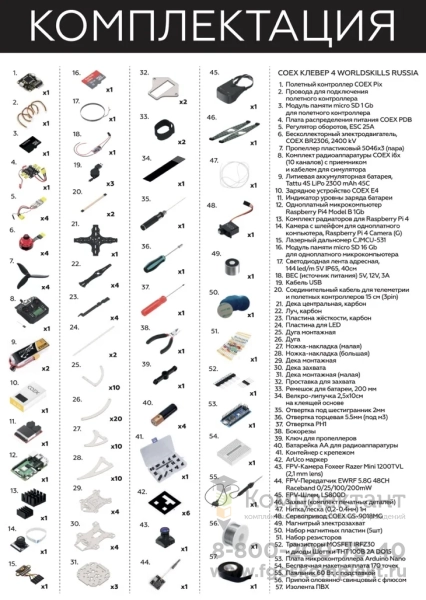 Учебный набор квадрокоптера по компетенции Эксплуатация Беспилотных Авиационных Систем "Клевер Про"