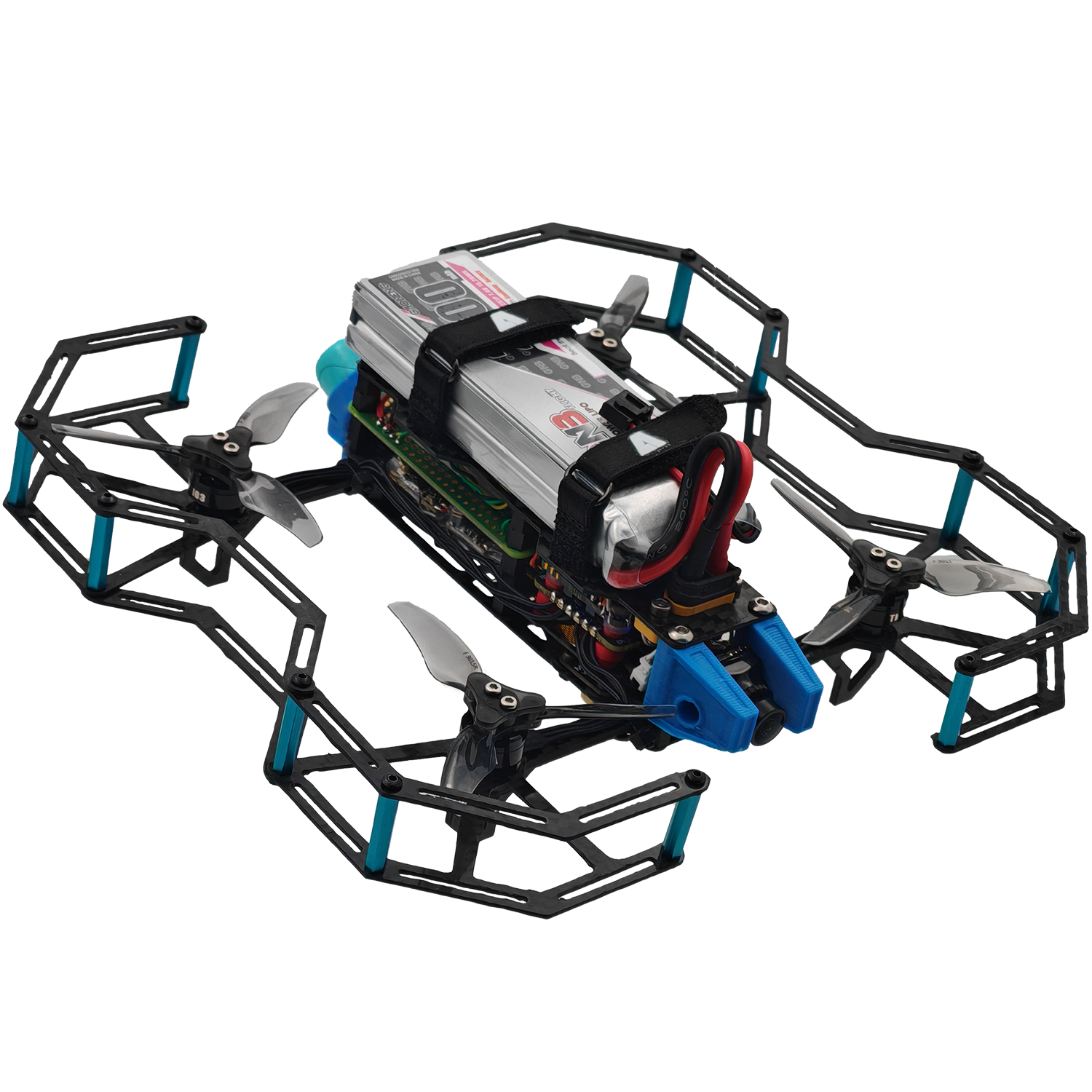 Эта модель микроквадрокоптера компактна и включает в себя интегрированный набор датчиков и модуль относительного позиционирования. Она обладает защитным карбоновым корпусом и защитой винтов.