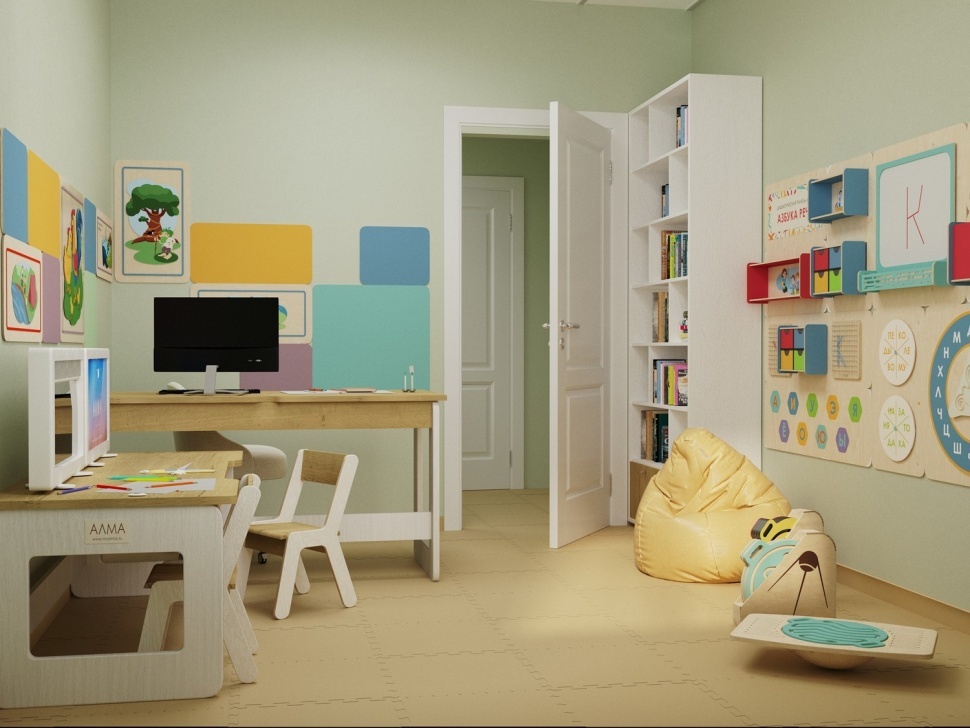 Готовое решение по оснащению кабинета логопеда в ДОУ. Содержит всё необходимое современное оборудование для эффективной работы детского специалиста: стол логопеда с компьютером, рабочий стол для детей, интерактивную панель с профильным ПО для логопедов «Звукоречье», дидактическую панель «Азбука речи», набор корпусной и мягкой мебели, безопасные зеркала, нейротренажеры, методические материалы и пособия.