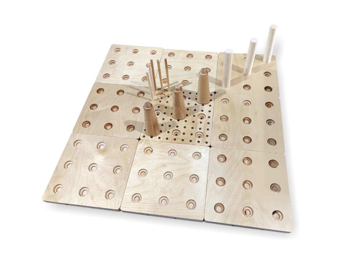 Доска-основа №1 Одно из направлений игры с доской - вышивка. Материалы научат детей пользоваться шнурками и справляться со своими ботинками. Дети просовывают цветные шнурки в отверстия доски, «вышивают» на поверхности изображения, нанизывают бусины и завязывают бантики. Во время игры тренируют мелкую моторику рук и гибкость пальчиков. Примеры упражнений: Доска-основание №2 Доска-основа поможет ребятам изучить геометрические формы, размеры и цвета предметов. Дети могут расставить стержни на доску, а затем сверху нанизать бусины и фигурки разных форм. Во время игры они тренируют логику, память и внимательность, а также способность повторять действия за педагогом. Примеры упражнений: Доска-основа №3 Доска-основа может быть использована в том числе для изучения цветов. Дети расставляют стержни на поверхности, а затем - надевают цветные фигуры. Во время игры развивается цветовое восприятие и зрительная память, а также моторика рук и хватательный рефлекс. Примеры упражнений: Доска-основа №4 Доска-основа поможет детям выучить геометрические фигуры и проявить логику, составляя фигуры при помощи резинок и стержней. Так, дети могут расставить стержни на доске, а затем - надеть резинки таким образом, чтобы получить какую-то фигуру. Во время игры развивается логика, внимательность и сосредоточенность. Примеры упражнений: В прилегающей методичке предложены возможные варианты упражнений для тренировки разных навыков ребенка. Примеры упражнений:Особенности: