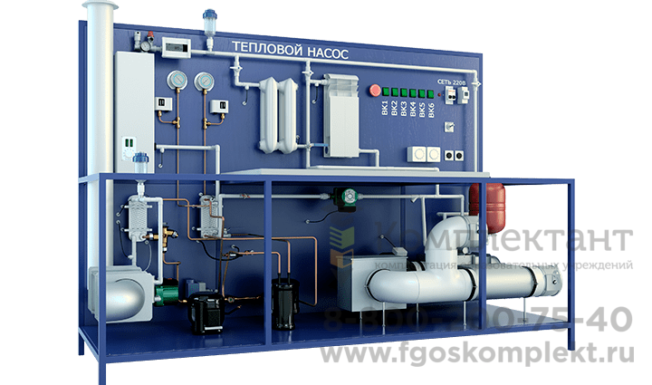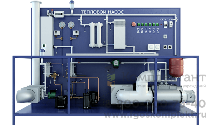 Установка предназначена для изучения, испытания и проведения лабораторных работ по энергосберегающим технологиям на основе теплового насоса