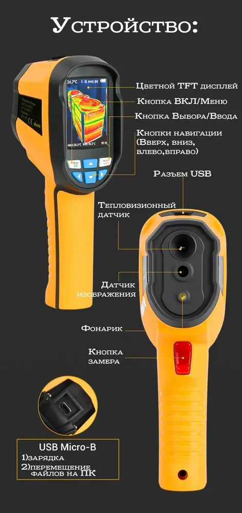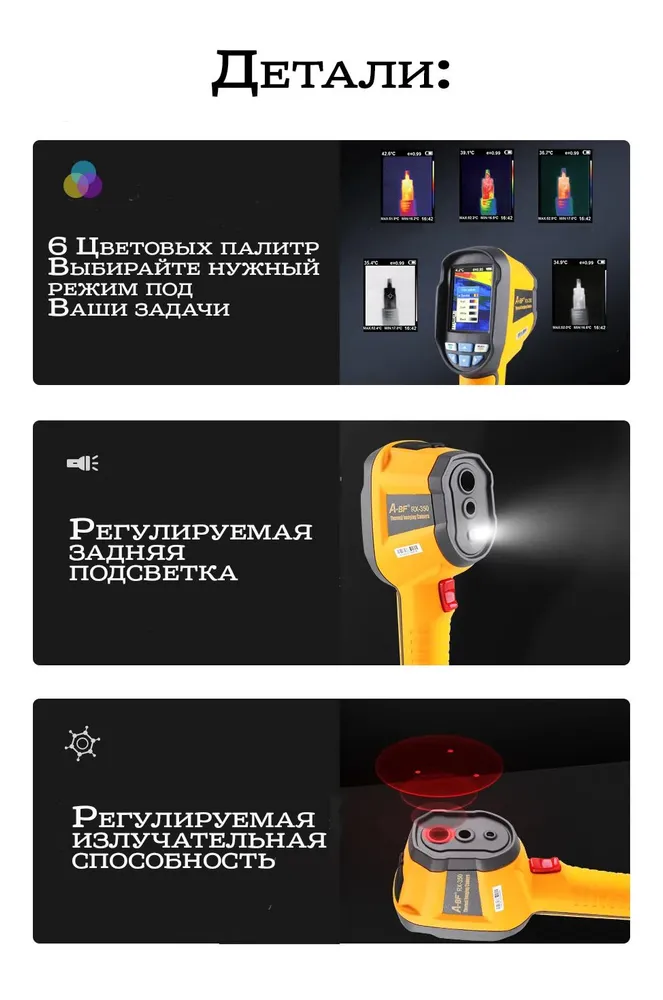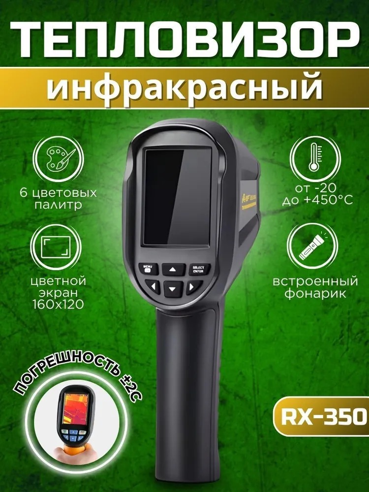 Инфракрасный тепловизор строительный позволит быстро и точно определить места повышенной или пониженной температуры, обнаружит скрытые системы отопления, утечки тепла и критические температуры. Яркий и цветной дисплей тепловизора, размером 2,8 дюйма, обеспечивает наглядное отображение измерений и визуализацию тепловых карт. Высокое ИК разрешение 160*120 пикс, позволяет отчетливо увидеть тепловые изображения в широком диапазоне температур от -20°С до 450°С. Есть возможность сохранения видео и фото в формате ВМР. Тепловизор имеет встроенную память объемом 3 ГБ, вы сможете хранить снимки и видео, есть возможность подключения к компьютеру, что позволяет передавать полученные данные для дальнейшего анализа. Особенностью этого тепловизора является его способность совмещать тепловое и реальное изображение (4 варианта отображения) это упрощает локализацию процесса измерения. Данный тепловизор поддерживает пять видов цветовой палитры, позволяя вам выбирать наиболее информативное отображение тепловых карт. Среди других преимуществ этого прибора следует отметить его высокую частоту кадров - 25 Гц, что обеспечивает плавное отображение информации без задержек. Тепловизор также обладает автоматическим распознаванием и визуализацией горячих и холодных точек, что помогает выявить наиболее значимые и аномальные температурные области. Компактный и удобный в использовании, тепловизор имеет встроенный заряжаемый литий-ионный аккумулятор. Прибор также оснащен функцией автоотключения, что позволяет экономить заряд батареи. Погрешность измерения составляет всего 2°С, это гарантирует высокую точность контроля температуры. Тепловизор имеет степень защиты IP54. Купив тепловизор строительный RX-350, вы получите надежного помощника в ремонте и строительстве. В комплекте с тепловизором поставляется подвесной ремень на руку, а также адаптер питания, кабель для передачи данных и инструкция.