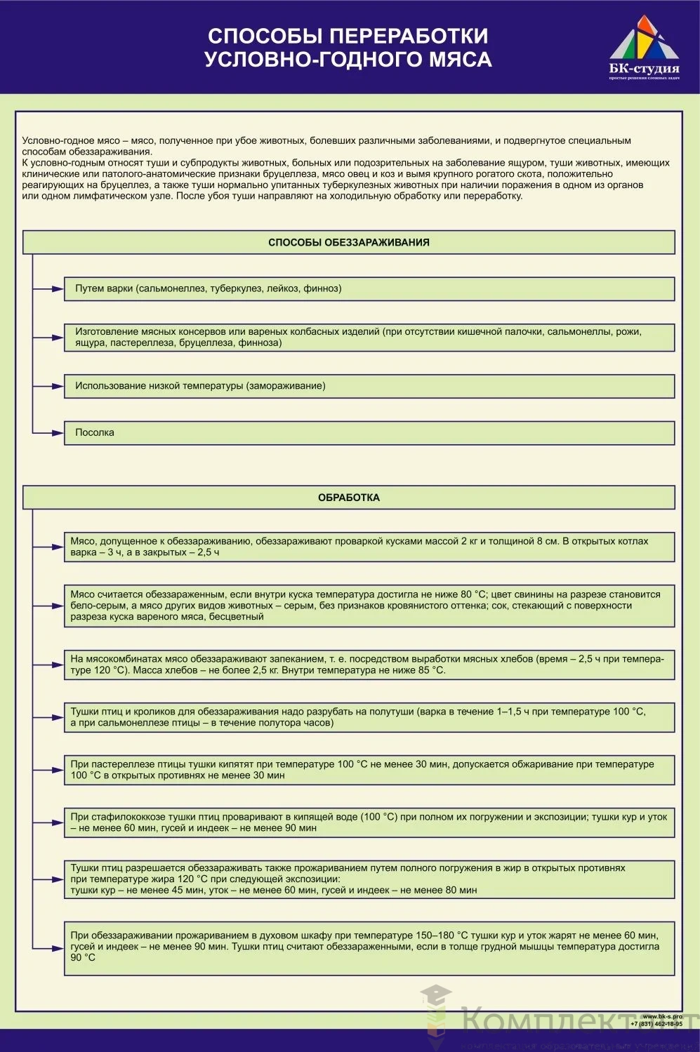Стенд на баннерной основе "Способы переработки условно-годного мяса"