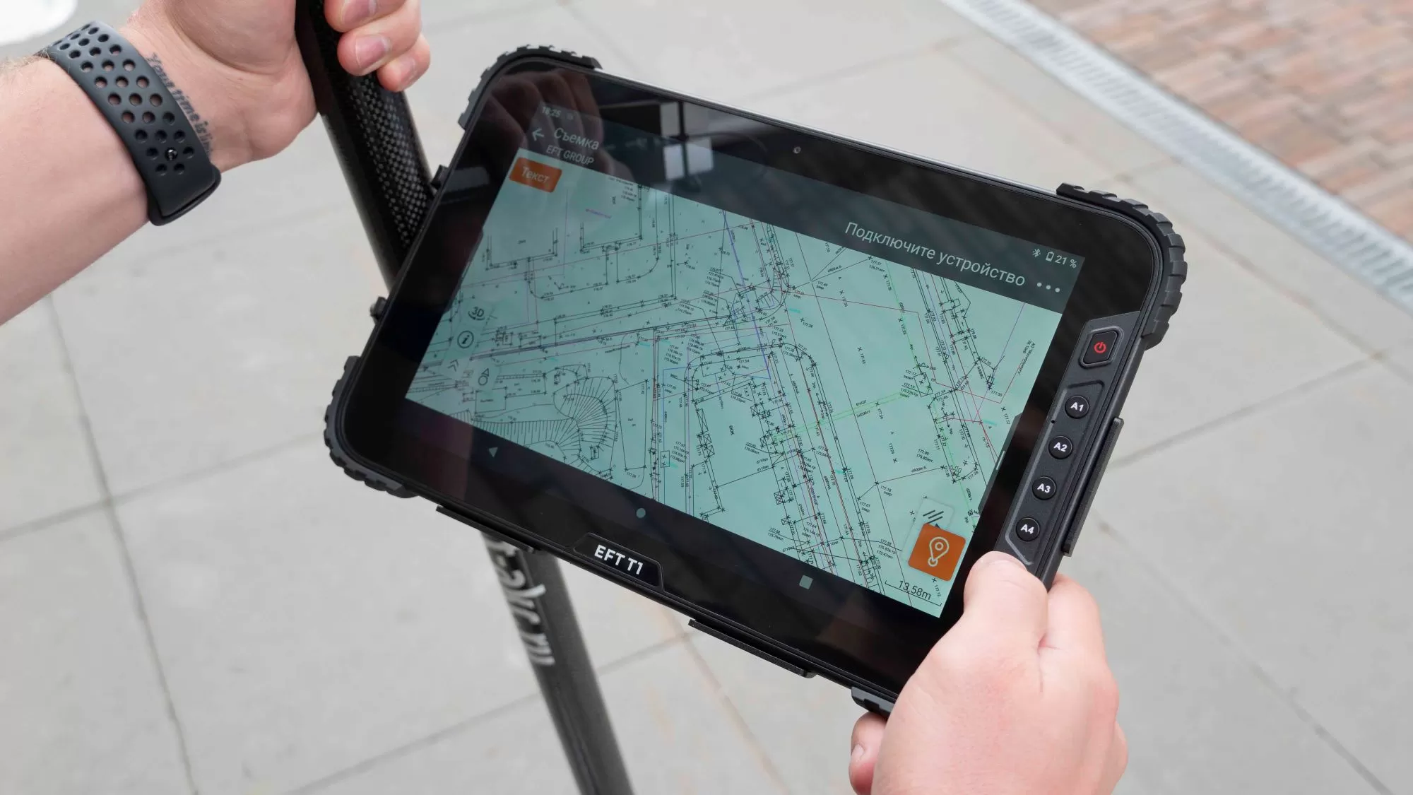 Планшет EFT Т1 представляет собой полноценное защищенное устройство для работы с графическими данными больших объемов, таких как CAD файлы непосредственно в поле.