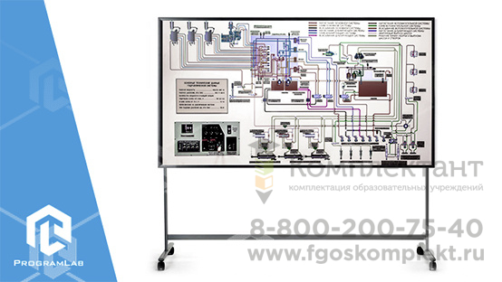 Электронно-логическое устройство обеспечивает взаимосвязь между светодиодной подсветкой стенда и подсветкой названий элементов и реализовывает два режима работы светодиодной подсветки: обучение и контроль. В режиме обучения преподаватель имеет возможность выделять каждый элемент и его название магнитной указкой. В режиме контроля студент имеет возможность самостоятельно сопоставить имеющиеся элементы с соответствующими названиями, расположенными в специальном секторе планшета.