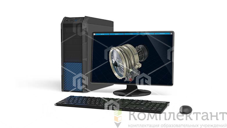 Программное обеспечение комплекса позволяет с помощью трехмерной графики и анимации изучить устройство и конструкцию двигателя а также продемонстрировать процесс работы двигателя по этапам с визуализацией внутренних процессов.