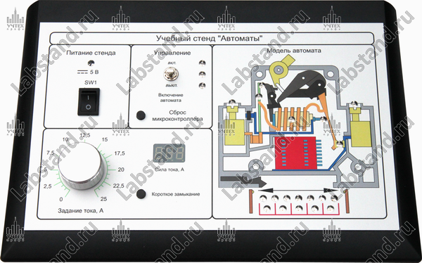 Модуль представляет собой моноблок с вмонтированной платой на безе микроконтроллера, который благодаря светодиодам наглядно визуализирует принцип работы дифференциального автомата.