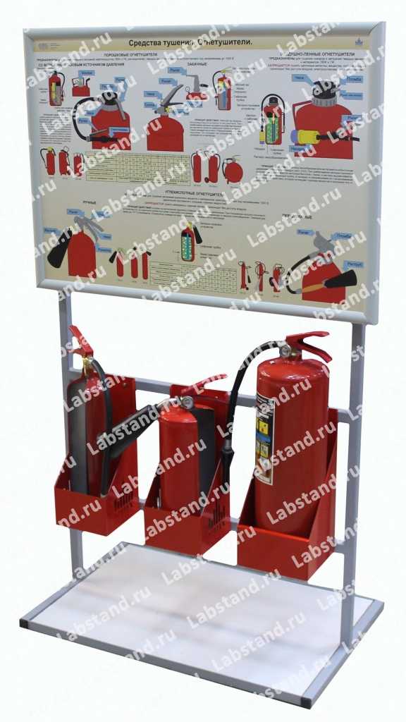 Назначение: Демонстрационный макет предназначен для проведения комплекса практических работ по изучению общего устройства и принципов работы огнетушителей, а также формированию первоначальных навыков по использованию огнетушителей.