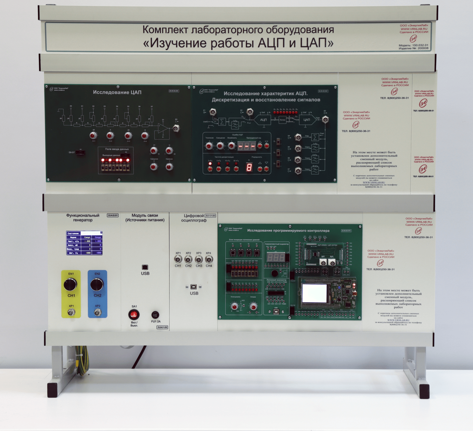 Комплект лабораторного оборудования «Изучение работы АЦП и ЦАП» предназначен для проведения лабораторно-практических занятий в учреждениях начального профессионального, среднего профессионального и высшего профессионального образования, для получения базовых и углубленных профессиональных знаний, и навыков.