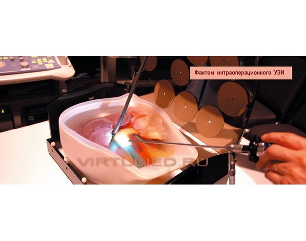 Мягкие ткани фантома обеспечивают реалистичные манипуляции зондом. Имитация различных патологических изменений, включая камни желчного пузыря и цисты, солидные опухоли (гипоэхогенные, гиперэхогенные и целевые изображения) в печени, поджелудочной железе, селезенке и почках. Отделив имитаторы желудка и двенадцатиперстной кишки, можно отработать различные методы сканирования желчного протока и поджелудочной железы. Контейнер позволяет выполнять иммерсионное сканирование как в технике контактного сканирования, так и в технике сканирования на расстоянии, имитируя реальное абдоминальное интраоперационное и лапароскопическое сканирование (контактный гель не нужен). Органы, структуры и абдоминальные патологические изменения по размерам максимально приближены к реальным. Контейнер с фантомом может быть помещен в лапароскопический торс‐тренажер, что делает возможным лапароскопическое УЗИ при прямом лапароскопическом обзоре.