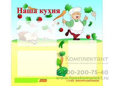 Стенд инф. ЭДУСТЕНД для ДОУ Наша кухня (75х70см, 3 карм., алюм. проф.)