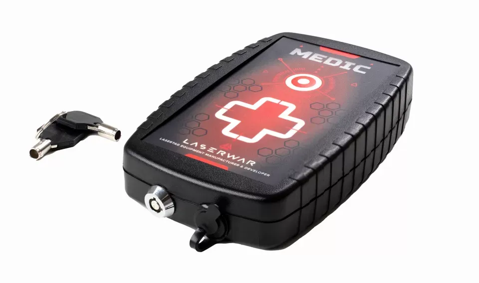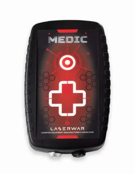 «Медик v.5» представляет собой портативное устройство для восполнения здоровья и боезапаса игроков.- В основе девайса специально разработанная материнская плата, отличающаяся улучшенной разводкой дорожек и повышенным качеством компонентов.- Квазисенсорная панель управления надежно крепится к корпусу и практически не боится дождя, снега и грязи.- Большой список команд для настройки. Девайс может восстанавливать здоровье или боезапас, сыграть роль аптечки, точки аномалии и т.д.- Девайс настраивается через LASERWAR-конфигуратор. Для перехода в режим программирования поместите комплект рядом с подключенной к персональному компьютеру USB-базой так, чтобы датчики устройств находились друг напротив друга, и примените к «Медику v.5» команду «Новая игра» с пульта. Переход произойдет в течение десяти секунд. При этом светодиоды устройства загорятся фиолетовым цветом.- Устройство обладает «эффектом памяти»: если «уничтоженный» «Медик» отключить и включить заново, он не оживет. Также сохраняются и запрограммированные параметры.- При бездействии в течение часа «Медик» переходит в режим ожидания.Рекомендовано в прокат!