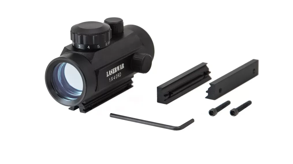 Коллиматорные прицелы 1х40RD оборудованы универсальным креплением, которое отлично сядет на планки Weaver и «Ласточкин хвост». В качестве прицельной марки используется яркая точка с двумя вариантами свечения - зеленым и красным. Для игры на ярком свете или в сумерках предусмотрена пятиступенчатая регулировка яркости точки каждого цвета. Любой игрок выставит оптимальную настройку в зависимости от условий полигона, площадки. Узлы поправки, расположенные в верхней и боковой части корпуса, приятно кликают, цена перещелкивания - одна угловая минута.Комплект поставки включает в себя: - прицел с креплениями;- шестигранник;- тряпочку для протирания линз;- защитные колпачки;- инструкцию.