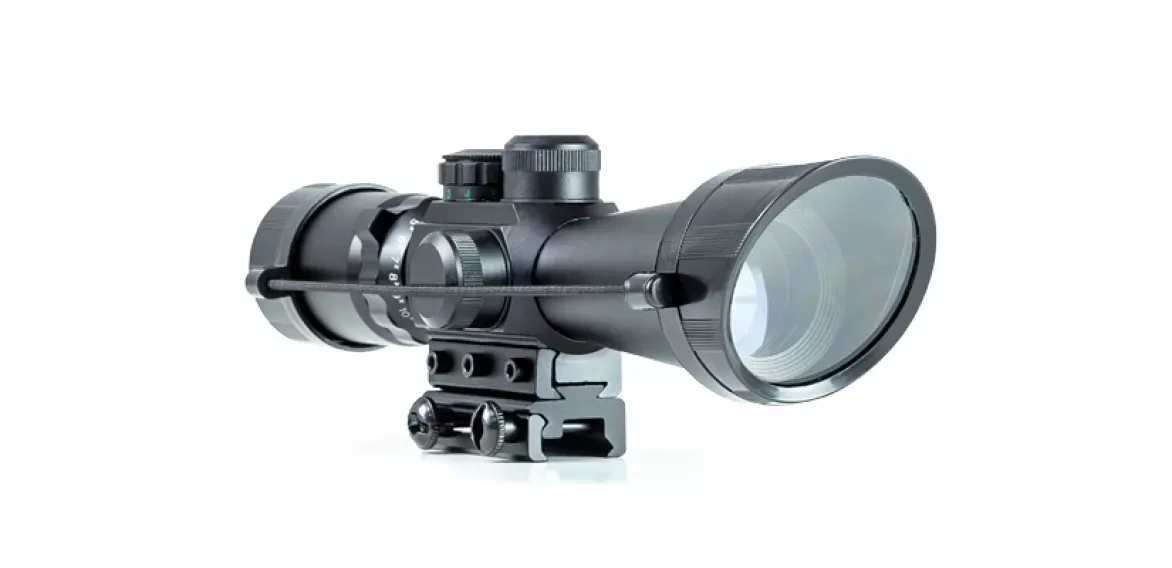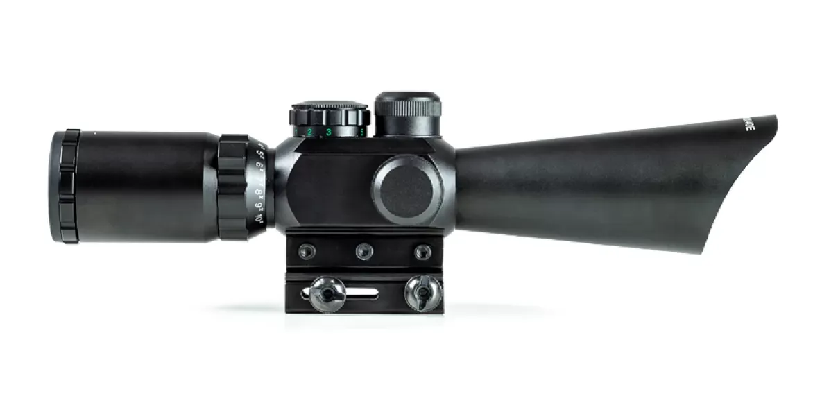 Особый интерес этот прицел представляет широкими возможностями настройки. Так, помимо приближения, предусмотрена настройка резкости, позволяющая четко видеть соперника при любом показателе кратности. Отличительной чертой данного оптического прицела от других является возможность подсветки перекрестия (два цвета - красный и зеленый) и регулировка яркости. Конструкция ОП позволяет устанавливать его на все игровые комплекты, имеющие планки Пикатинни. Дальность видения пятна ЛЦУ колеблется от 10 до 200 метров в диапазоне освещенности от 2000 - 3000 люкс (солнечный день, в тени) до 2 люкс (полутемное помещение).Основные характеристики: масса 600 г, длина прицела: 270 мм, длина планки: 60 мм, кратность: от 3,5 до 10, диаметр входного зрачка: 40 мм.