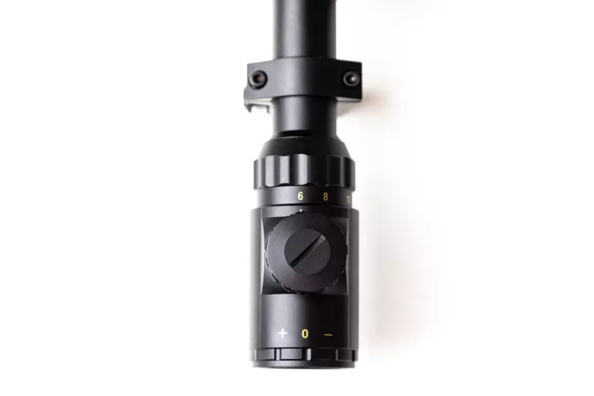 6-24X50AOE представляет собой оптический прицел переменной кратности, обеспечивающий получение высококачественного изображения. Главные плюсы данной модели - яркость и четкость изображения, широкое поле зрения, простота эксплуатации - обеспечили ей широкий спрос среди лазертаг-игроков.Прицел оборудован кольцом кратности и регулировкой фокуса. Первое позволит отрегулировать увеличение, второе - настроить изображение под особенности своего зрения (дальнозоркость или близорукость), поэтому игрокам с дефектами зрения можно вести стрельбу без очков. Прицельная сетка имеет подсветку двух цветов (зеленую и красную). За подсветку прицельной сетки отвечает барабан, регулирующий яркость в 5 режимах для каждого из цветов. Узлы поправки расположены в верхней и боковой части корпуса.На объективе расположено кольцо отстройки от параллакса. На обойме объектива нанесена шкала, обозначающая дистанцию фокусировки. Параллакс устраняется вращением кольца на объективе при настройке объектива на нужную дистанцию стрельбы.Кроме этого, комплект поставки включает в себя защитные стекла со светофильтром, инструкцию и кольцевые крепления на планку 22 мм.Характеристики:кратность - 6-24;диаметр объектива - 50 мм;система Adjustable Objective;введение поправок осуществляется с помощью барабанчиков, расположенных на корпусе прицела;подсветка сетки - красный, зеленый