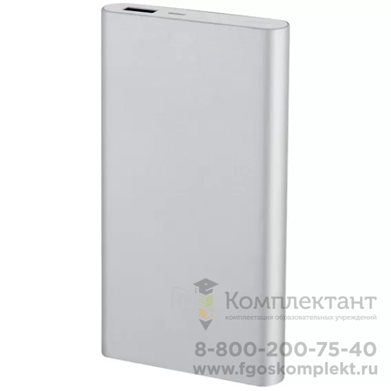 Портативный аккумулятор с серебристым корпусом из металла. Стильный компактный пауэр-банк оснащен выходным зарядным разъемом USB и micro USB, с помощью которых можно заряжать как сам пауэр-банк, так и роутер. На выходе обеспечивает ток силой 2.1 А, напряжением 5 В. Снабжен встроенной литий-полимерной батареей емкостью 10000 мАч.В аккумуляторе использован светодиодный индикатор заряда, который показывает текущий уровень заряда батареи при нажатии на кнопку. Снабжен защитой от перегрузок.