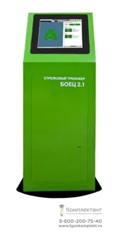 порошковый окрас) с встроенным LCD монитором 17`, сенсорным вандалостойким экраном и внутренним отсеком для хранения имитаторов оружия размером 1000х385х160 мм, запирающимся на ключ (сейфовый замок типа «Герион»). В комплектацию тренажера входят: