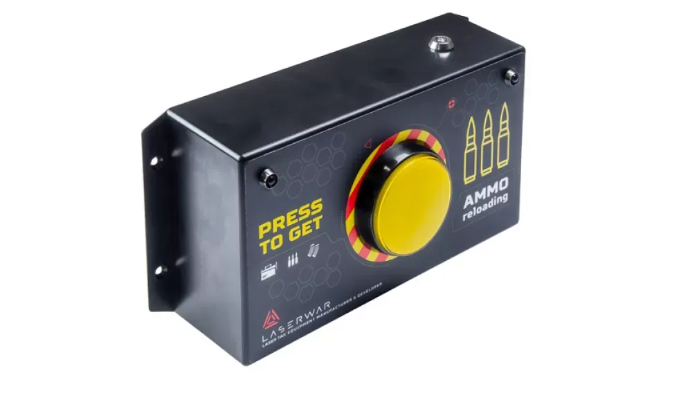 «Арсенал» - ближайший родственник классической «Базовой аптечки» LASERWAR. Девайс предназначен для обновления запаса патронов.Принцип действия «Арсенала» прост. Устройство активируется с помощью специального ключа. После этого кнопка загорается жёлтым - девайс готов к работе. В верхней части корпуса расположены два ИК излучателя. Одно нажатие на кнопку - один импульс. Тагеры, попадающие в зону действия инфракрасных импульсов, получают новый запас патронов. После перезарядки макеты сразу же готовы к игре.Вы не запутаетесь в обращении с устройством: стильные пиктограммы дают исчерпывающую информацию о назначении девайса.Четыре отверстия под винты по бокам корпуса позволяют закрепить устройство на стене. Разъём питания на нижней боковой стенке защищён резиновой заглушкой.Дизайн «Арсенала» минималистичен и при этом максимально информативен. В центре - внушительных размеров жёлтая кнопка в жёлто-красном обрамлении. Её видно издалека даже в темноте. Такой эффект достигается в том числе благодаря яркой подсветке. Наши конструкторы позаботились о том, чтобы эта деталь была удобной и прочной. Кнопка выдержит тысячи нажатий.«Арсенал» станет незаменимым помощником при проведении спортивных лазертаг-турниров, тактических тренировок, корпоративных и развлекательных мероприятий на лазертаг-аренах.
