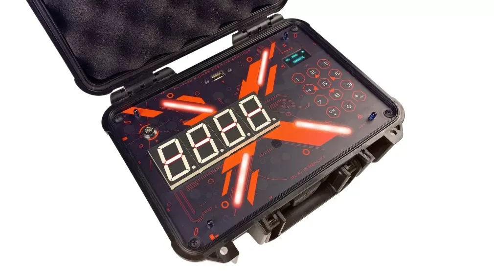 Ядерный чемоданчик «Периметр» представляет собой развитие известного среди игроков в лазертаг «Имитатора взрывного устройства». Представляет собой компактный кейс с 3 сценарными функциями. Позволяет решать такие игровые задачи, как минирование и разминирование.Девайс включает и перезагружает инструктор с помощью стандартного ключа. Игроки могут только активировать и деактивировать условное взрывное устройство при помощи пароля и флешки. Если «ИВУ» не деактивировать вовремя, он отнимет все «жизни» игроков в радиусе действия.- Дизайн в милитари стиле в красных тонах.- Девайс изготовлен из ударопрочного АБС-пластика чёрного цвета. В конструкции предусмотрена ручка для переноски.- «Периметр» не нужно подключать к компьютеру для настройки: параметры меняются в меню администратора прямо на полигоне. Вся информация выводится на два экрана: сегментный (для отсчёта времени) и OLED-дисплей (для всех меню, ввода пароля, названия клуба и т.д.).- Радиус поражения - до 15 метров в помещении за счет большого рикошета от потолка.- Полный пакет звуковых эффектов и речевых подсказок.- Интеграция в сценарии ALPHATAG и X-GEN при помощи встроенного Wi-Fi модуляРекомендовано в прокат!